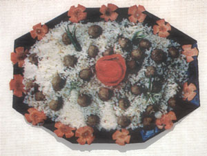 At first put some boiled rice in the pan. Then put some kopta which you have already made and some fried onion and mawa mixed on rice. Then repeat the same process for the second time. And at last put the ghee and some green chilies and mawa at the third stage. Your preparation has been finished . Now you will put the pan in minimum heat for half an hour.